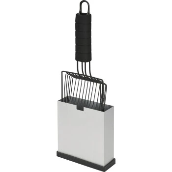 Die Streuschaufel lässt sich einfach verstauen durch passende eine Halterung.