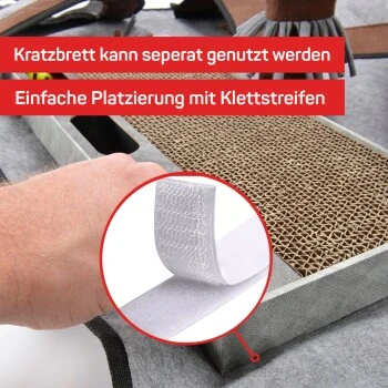 Lassen Sie Ihren vierbeinigen Liebling sich seine Leckereien verdienen. Verschiedenste Verstecke laden zum Suchen und Herumtollen ein. In jedem Tunnel, Turm oder Versteck sind Löcher eingelassen, sodass Ihre Katze mit der Pfote hindurch kommt und die integrierten Spielbüschel inkl. Glöckchen einfangen kann. Erleben Sie gemeinsame Stunden voller Spielspaß beim Kratzen, Suchen und Spielen. Fordern Sie Ihre Katze! Beschäftigung pur, durch aktives Spielen und Instinktförderung. Interaktives Spielen hat noch nie so viel Spaß gemacht! Und sollte mal nicht genügend Platz für den gesamten Spielteppich vorhanden sein, lässt sich das Kratzbrett inkl. Spielschiene vom Teppich lösen und einzeln verwenden. Noch nie wurde Ihrer Katze soviel auf nur einem Quadratmeter geboten!