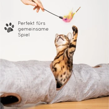 Hochwertiger Katzentunnel mit modernem Print und 3 Gucklöchern mit plüschigem Spielball