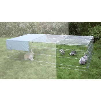 Das verzinkte Erweiterungsset kann durch Erdspieße mühelose an das Freilaufgehege angebunden werden.