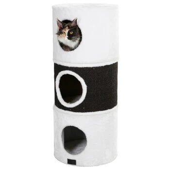 Große Kratzflächen bieten genügend Platz zum Schärfen der Krallen. Drei Höhlen in verschiedenen Höhen sind ideal zum Spielen und verstecken. Spielspaß, Rückzugsort und Schlafplatz auf komprimierten Raum, die beste Alternative zu Kratzbäumen. Die Liegefläche oben auf der Tonne dient als perfekte Aussichtsplattform, auf der sich der Schmusetiger auch mal ausruhen kann.