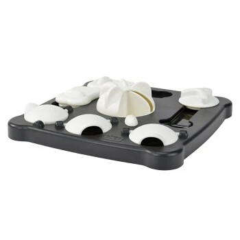 Das Modell Tricky ist eine wirkliche Herausforderung für dich und deinen Vierbeiner. Verstecke Snacks, die dein Hund anschließend suchen soll, unter den weißen Kappen und Drehelementen. Er wird lernen, dass er mit Hilfe seiner Zähne die Kappen hochheben oder diese mit seinen Pfoten bzw. der Schnauze umkippen kann, um an seinen Belohnungshappen zu gelangen.