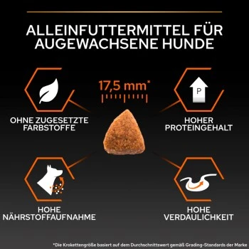 Bei PURINA PRO PLAN wendet unser Team von Ernährungswissenschaftlern und erfahrenen Tierärzten modernste Wissenschaft an, um die fortschrittlichste und effizienteste Nährstoffkombination für dein Haustier zu entwickeln. Diese Rezepturen helfen gezielte Vorteile wie eine hohe Verdaulichkeit und eine hohe Nährstoffaufnahme zu bieten, um die natürlichen Abwehrkräfte und die langfristige Gesundheit deines Haustieres zu unterstützen. Die Zutat Nummer 1 sind immer hochwertige Stücke von Huhn, Lamm, Lachs, Truthahn oder Rind, die tiefgefroren wurden, um wichtige Nährstoffe einzuschließen, und perfekt gegart für einen köstlichen Geschmack.