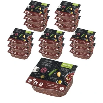 Das perfekte Diätfutter: Mit einem Fettanteil von unter fünf Prozent eignet sich Pferdefleisch sehr gut für übergewichtige, weniger aktive oder ältere Hunde. In unserem Pferd-Menü frisch und fertig ist das magere Fleisch bereits für eine vollwertige Mahlzeit kombiniert mit Gemüse, Kohlenhydraten und Öl. Aufwendige Futterpläne und Baukastensysteme entfallen so. Kartoffeln bieten in dem Frische-Menü wichtige Nährstoffe und sind ein guter Energielieferant. Der Gemüseanteil des Premiumfutters wird mit vitaminreicher Zucchini gedeckt, die vielen Hunden sehr gut schmeckt und leicht verdaulich ist.